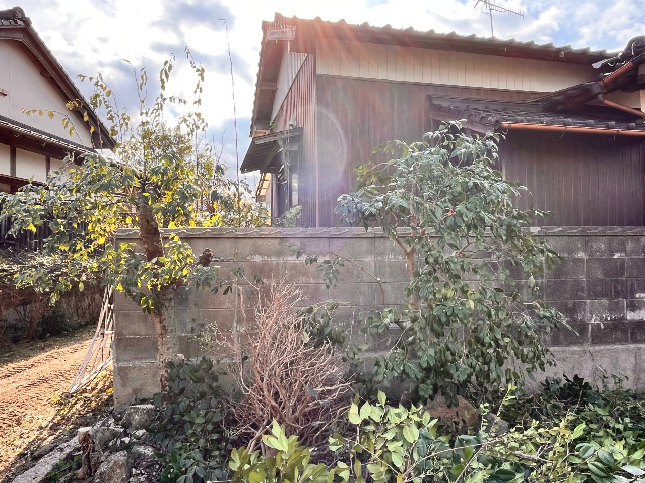 実はこの作業を終えた後、スカスカになっていて後ろのお家の庭に置かれている「福山通運のコンテナ」が丸見えに。